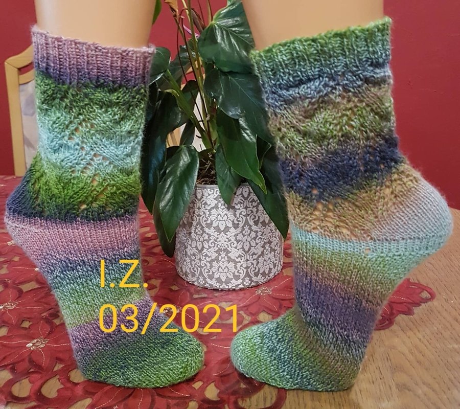 Bündchen, Ferse und Spitze werden nicht beschrieben.