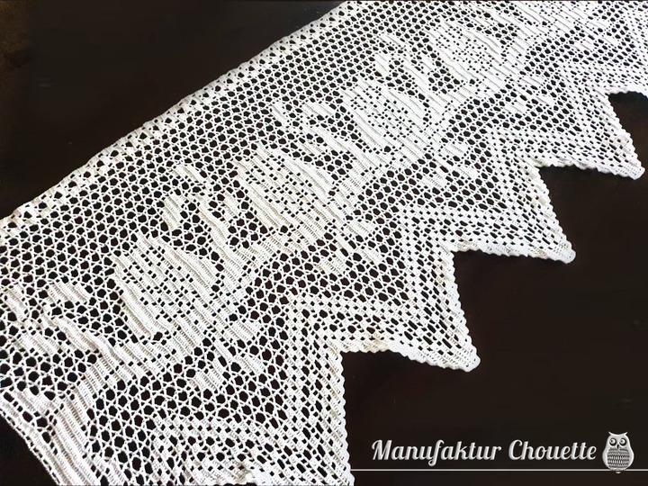 Du kannst gern so viele Gardinen häkeln, wie Du möchtest. Mit einem Hinweis auf mein Urheberrecht der Anleitung darfst Du Deine selbst hergestellten Gardinen auch zum lokalen Kauf anbieten. Angebote als Auktion sind NICHT gestattet!"