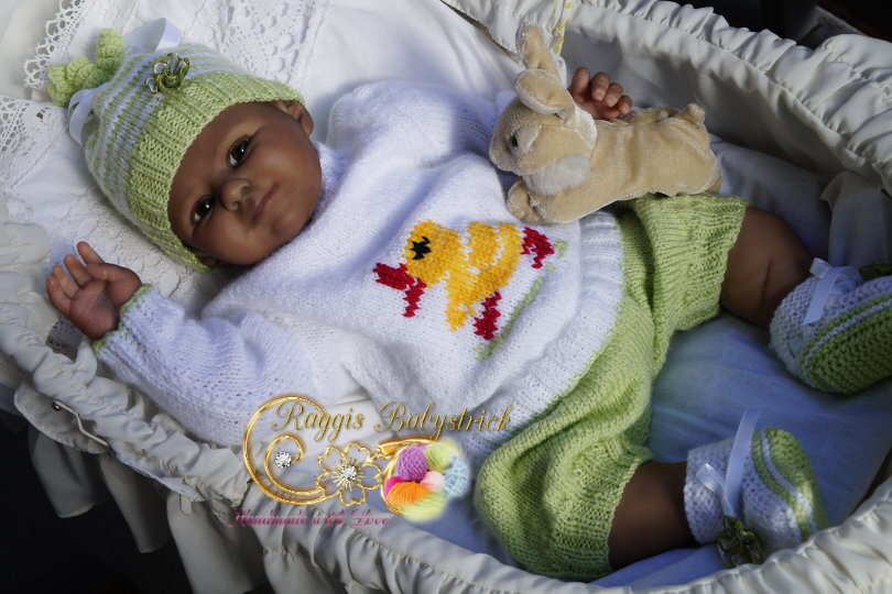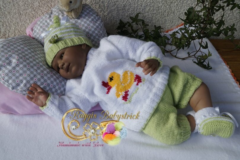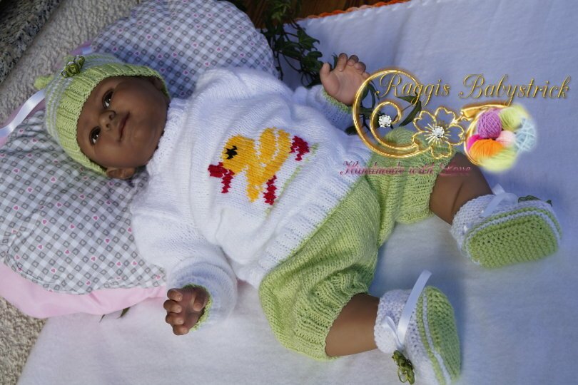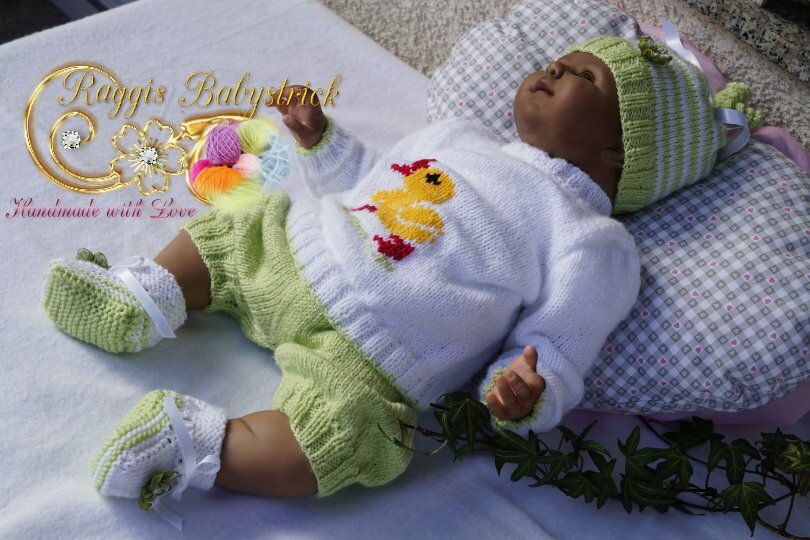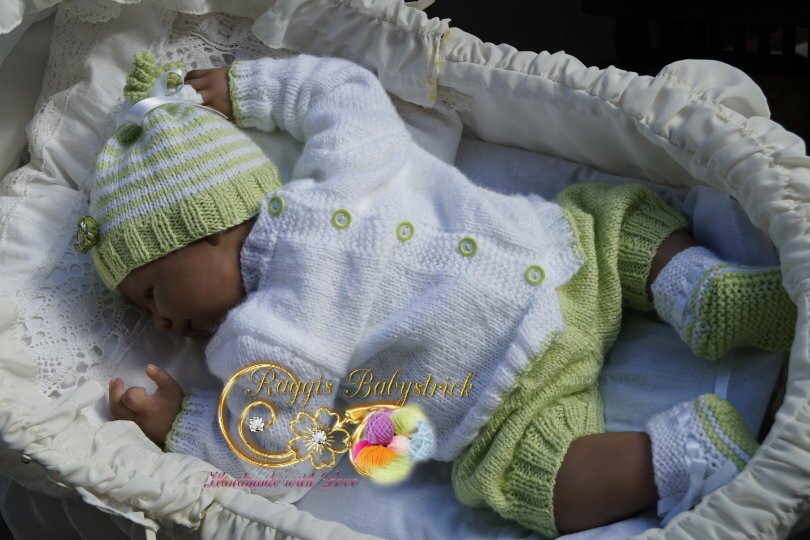 Strickanleitung für ein wunderschönes Set, 4-teilig für Babys & Reborns, Gr. 50 - 56 Das Set ist aus Babysoftwolle Nd. Nr. 2,5 + 3 gestrickt. Die Anleitung ist sehr genau beschrieben und mit vielen Fotos. Du kannst mit dieser Schritt – für – Schritt – Anleitung dieses Set gut nacharbeiten.
