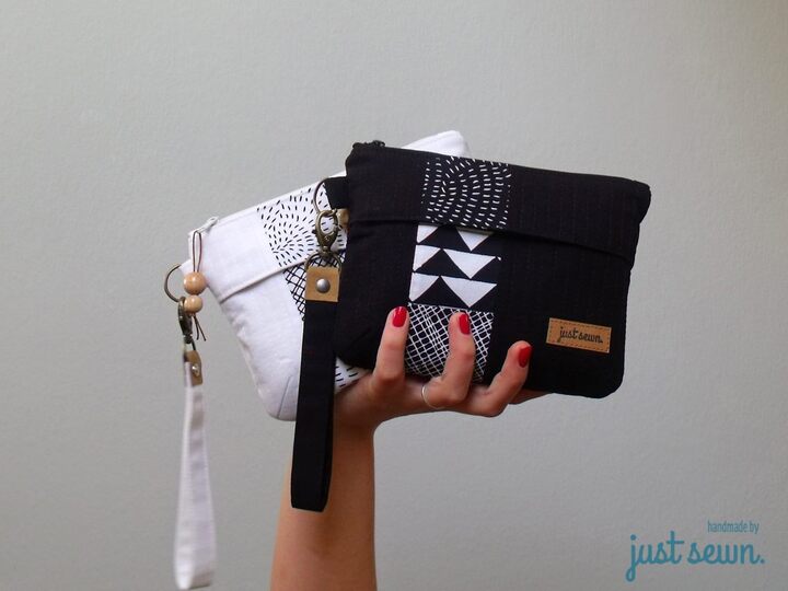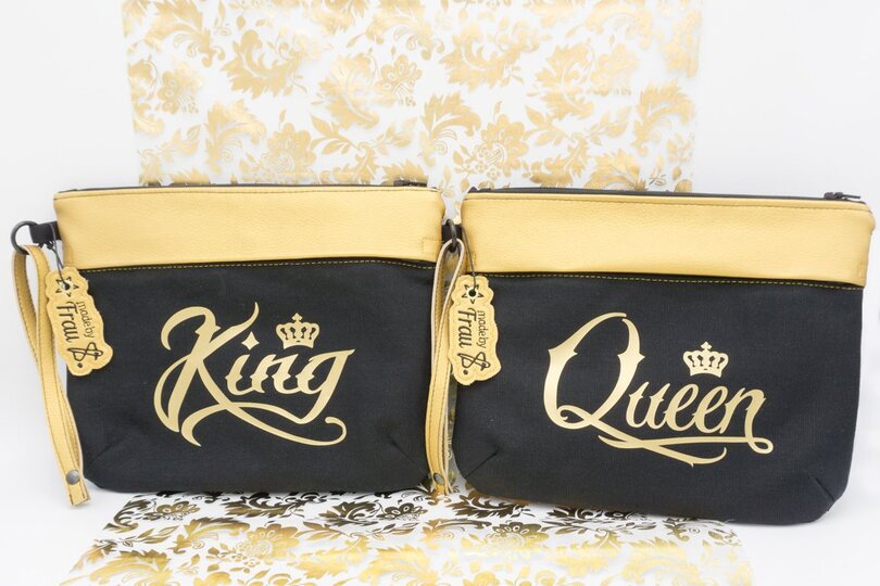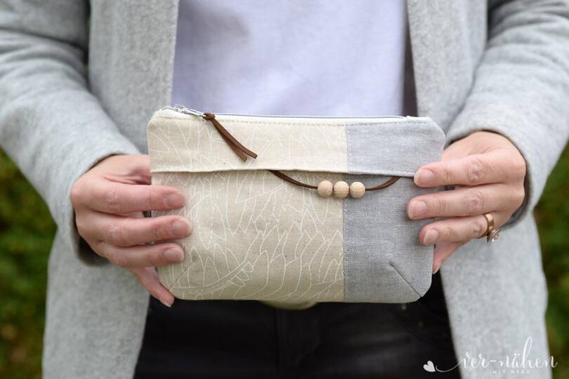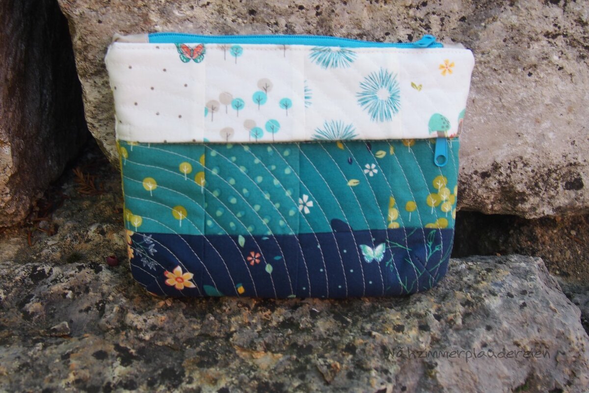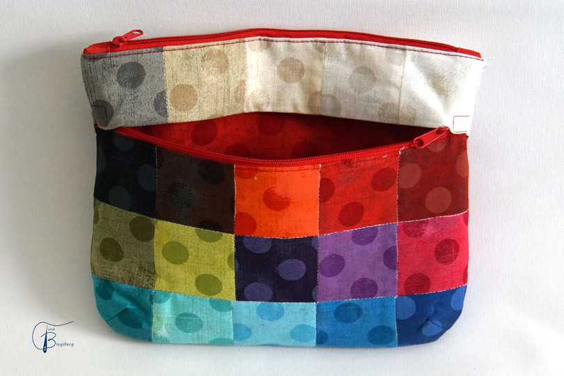 Mit Hilfe dieser Anleitung kannst Du eine Kosmetiktasche nähen. Das Schnittmuster beinhaltet zwei Größen, eine kleine von ca. 20 cm x 15 cm und eine größere von ca. 25 cm x 20 cm. Die Kosmetiktasche wird auf der Oberseite mit einem Reißverschluss verschlossen. Zusätzlich ist auf der Vorderseite an der Unterteilung ein versteckter Reißverschluss angebracht. Du hast die Möglichkeit eine ganz normale Kosmetiktasche zu nähen oder eine Patchwork-Variante. Dabei ist der Schnitt so optimiert, dass die Patchwork-Quadrate am Ende alle die gleiche Größe haben. Die Täschchen bieten viel Platz und können natürlich nicht nur für Kosmetikartikel verwendet werden. So finden in der kleinen auch Stifte ein neues Zuhause, oder auch Stricknadeln und andere Handarbeitsutensilien.