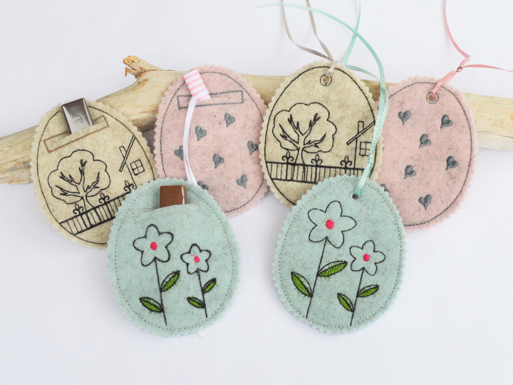 Hier habe ich ein schönen SET zu Ostern: einmal enthalten Anhänger zum Aufhängen am Osterstrauch und einmal als Wuscherfüller zum Verschenken von Schokoriegel, Geldgeschenken, Ostergrüßen.