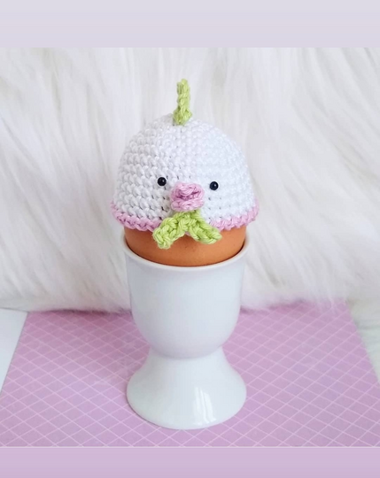 Häkelanleitung für eine kleine zuckersüße Huhn-Eierdeko, gehäkelt aus festen Maschen.