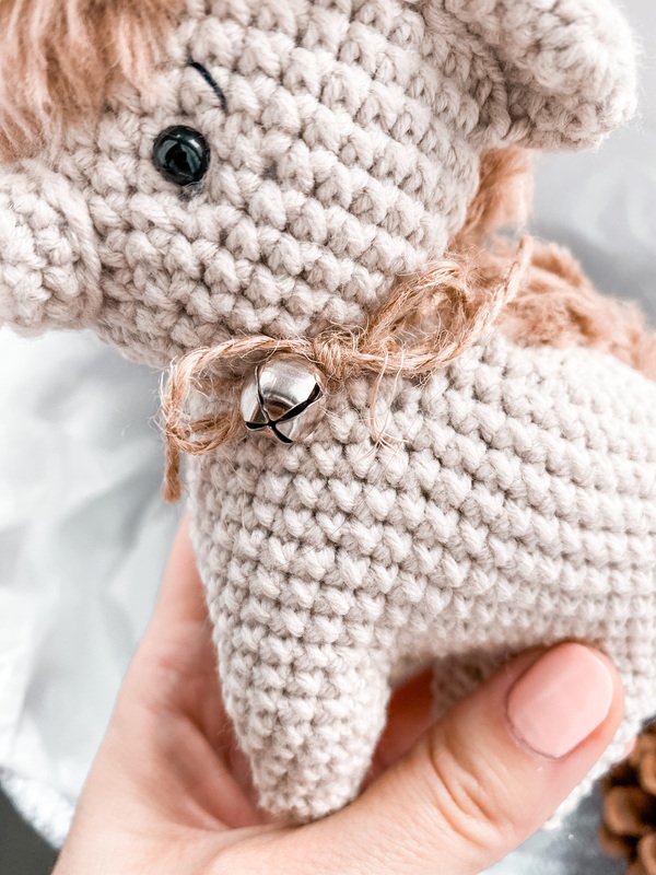 Aus der Lima Alpaka Wolle von Drops wird das fertige Spielzeug ca. 12 cm groß.