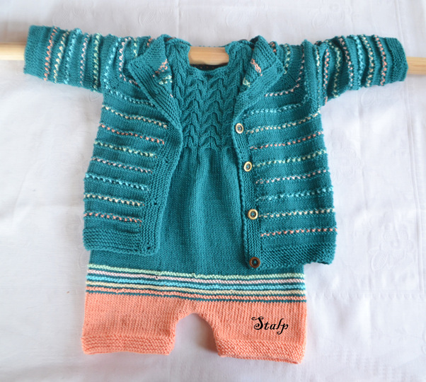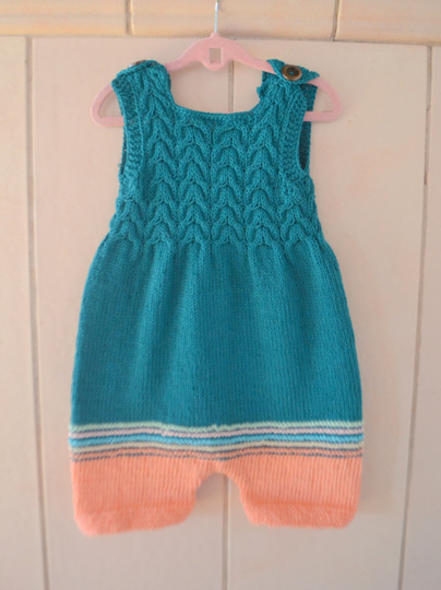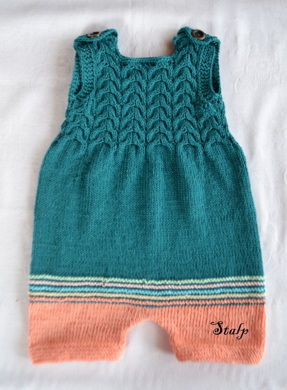 Strickanleitung für Kurzoverall mit bunten Reihen, für Mädchen und Jungs.