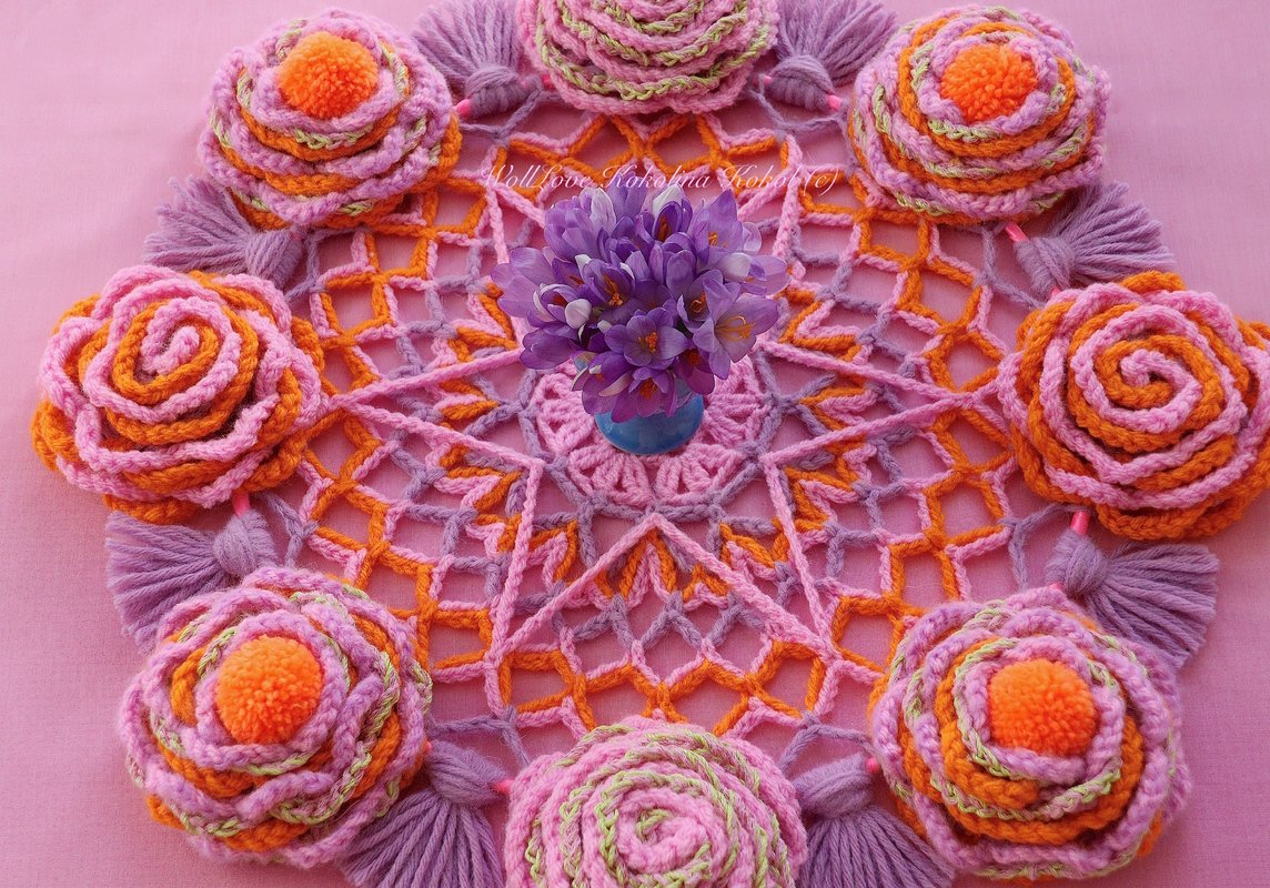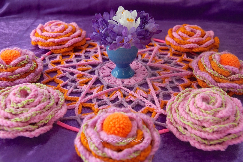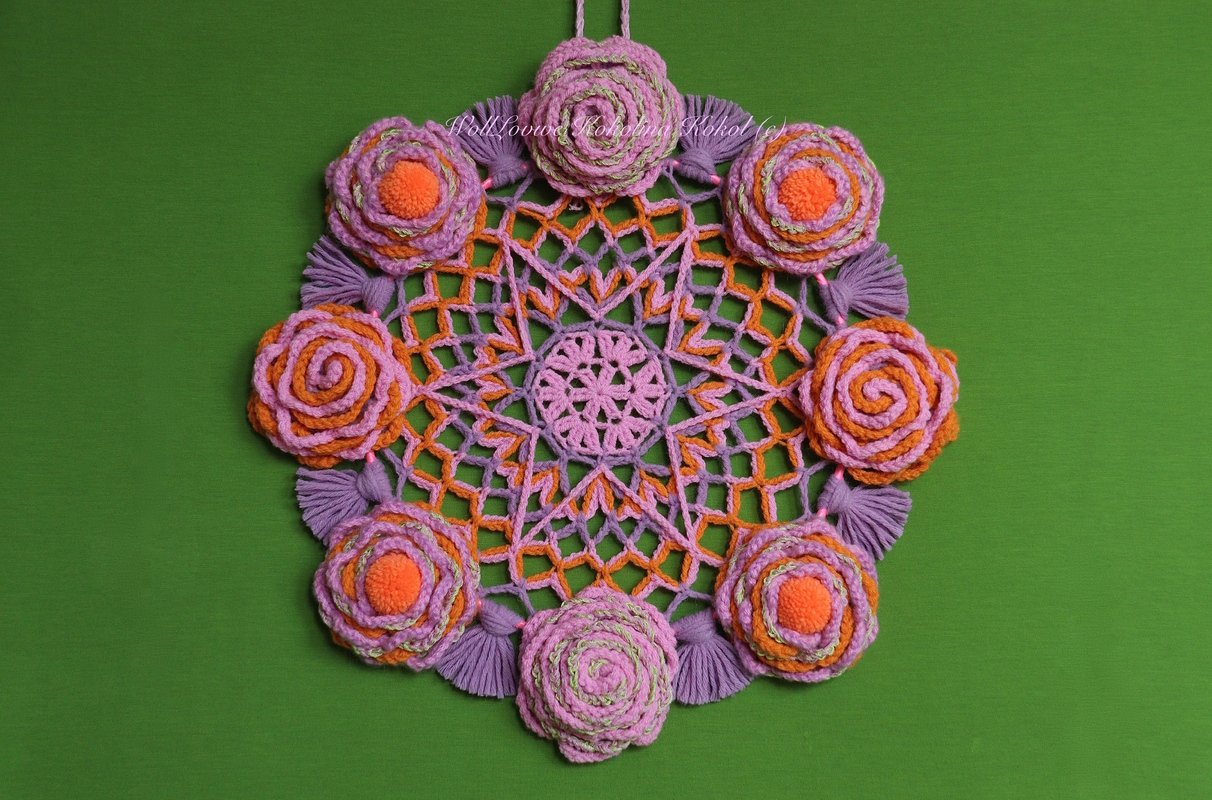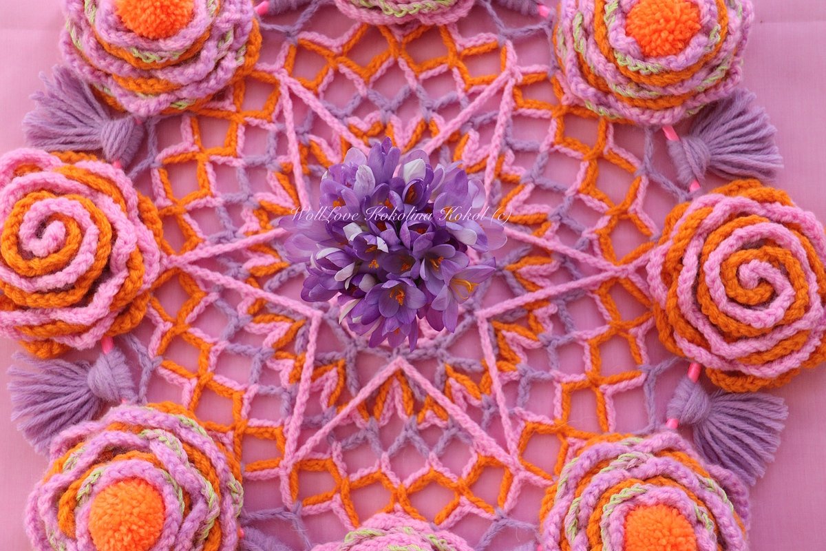 du brauchst 25 g Wolle / für das Mandala / 100g für 8 Blumen / 50 g für 4 Bommeln /