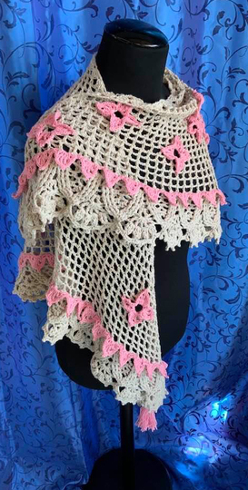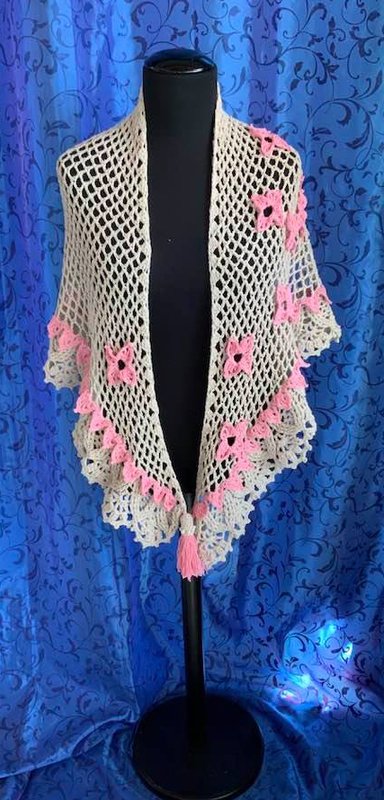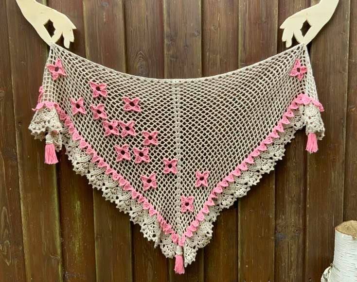 Das Sommertuch "NICKYBlümchen" ist ein zartes Sommertuch..herrlich auch über romantischen Kleidern zu tragen...dann noch netten, rosa Blümchen auf der Netzstruktur, garniert mit einer bezaubernden Abschlusskante und den 3 Quasten.....ein tolle Handarbeit!