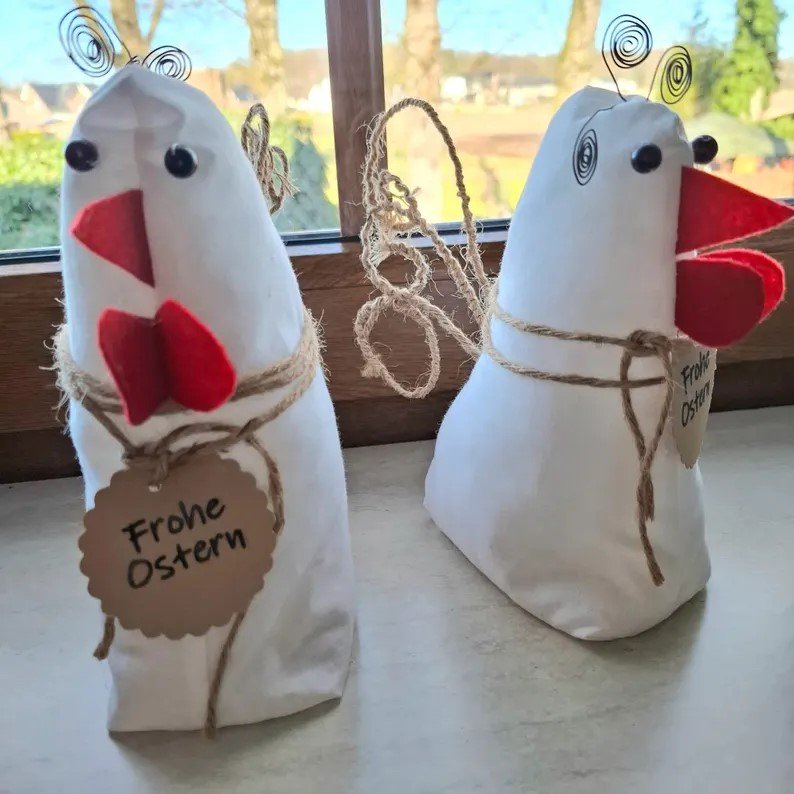 Mit dieser Anleitung nähst du dir in kurzer Zeit ein süßes Huhn. Niedliches Dekoaccessoires oder Geschenk zu Ostern.
