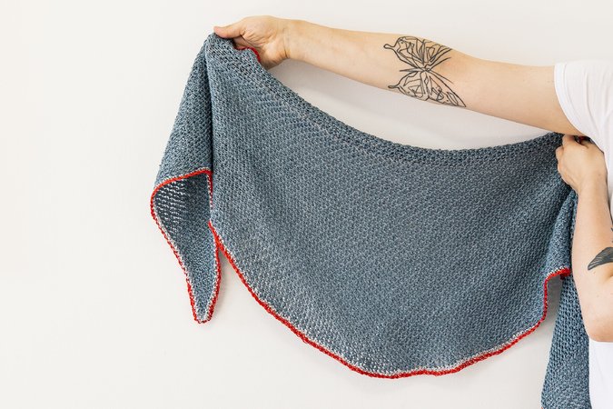 Das Tuch wird seitlich von Spitze zu Spitze gehäkelt.