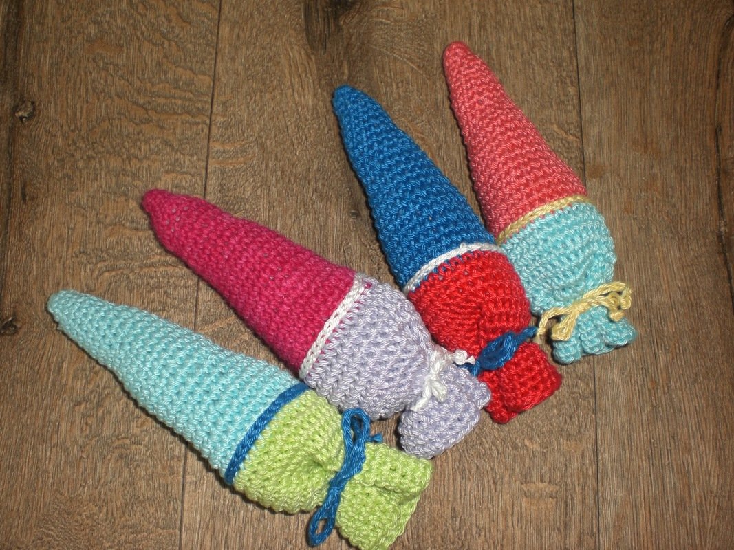 Einfache Anleitung zum Mini Schultüte selber häkeln. Vielleicht verschenkt mit einer Kleinigkeit in der Zuckertüte.