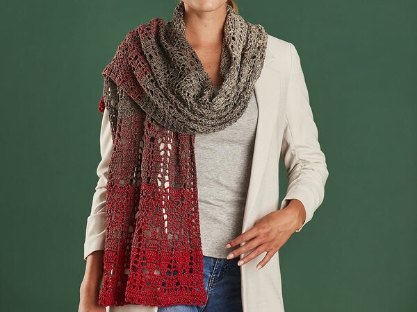 Eine schöne lange Stola mit einem interessanten Rautenmuster. Ein Bobbel reicht für das gute Stück.