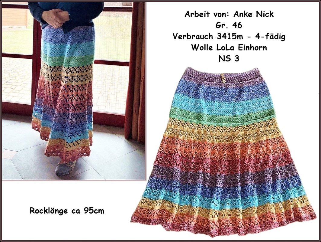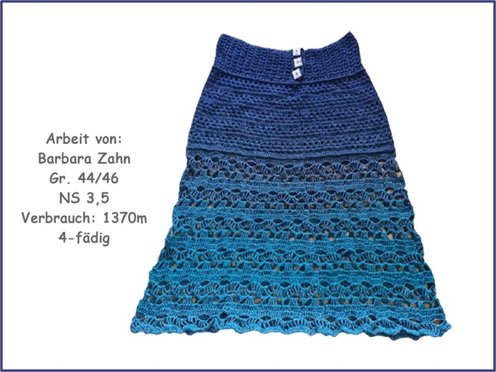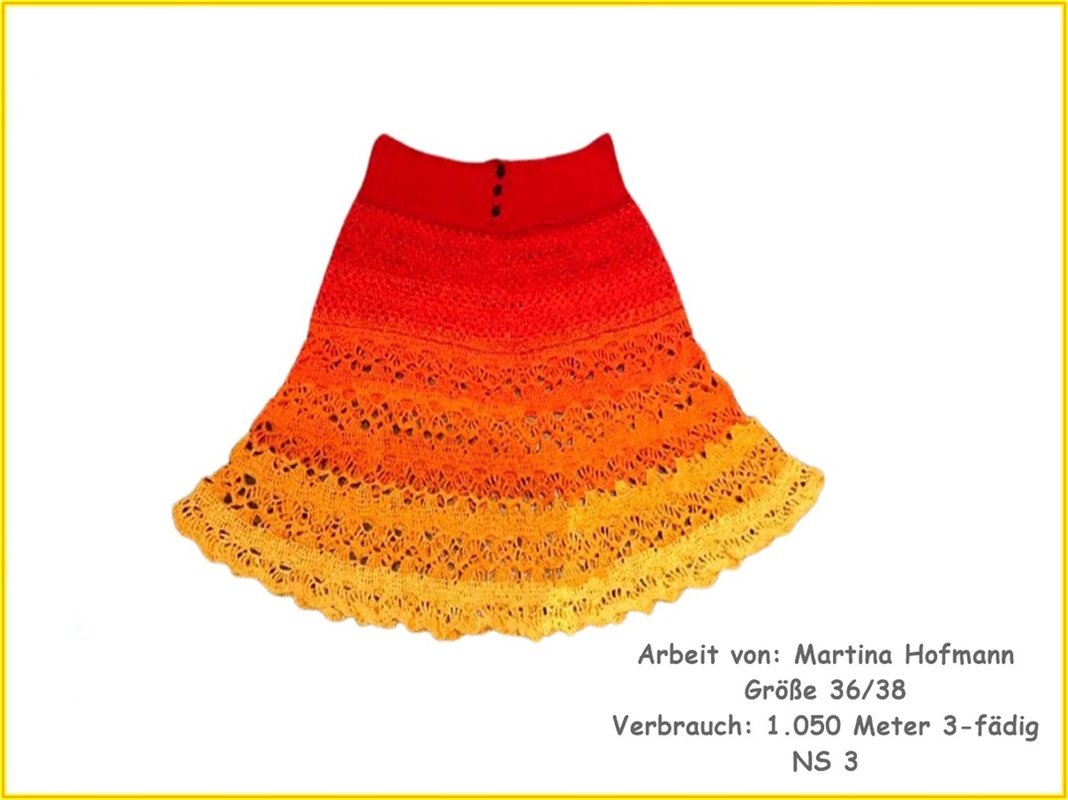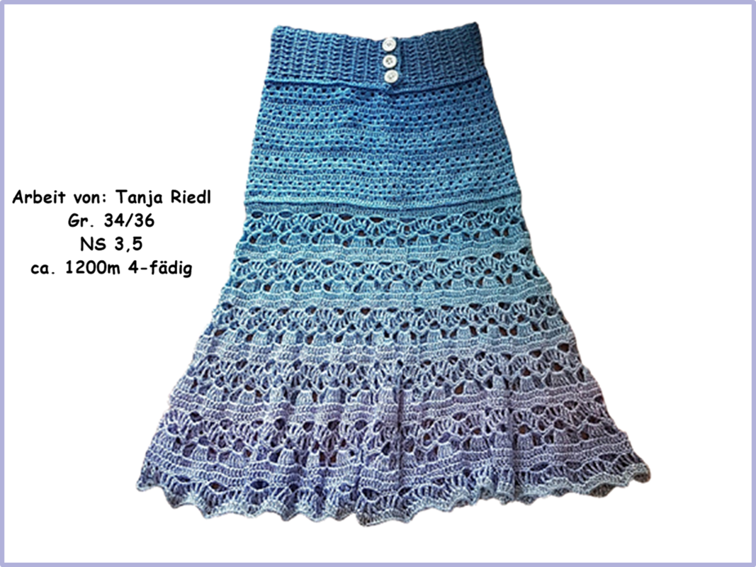 Der Materialverbrauch ist abhängig von der Garnstärke, der Nadelstärke und der Rock-/ Kleidergröße: