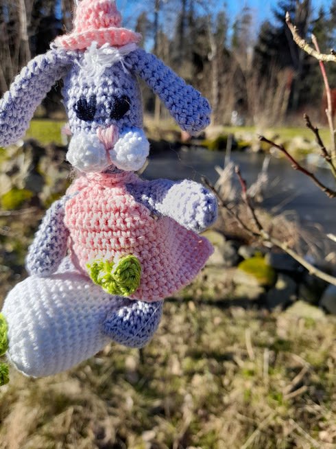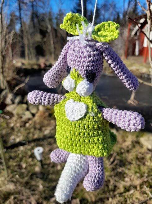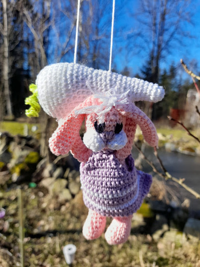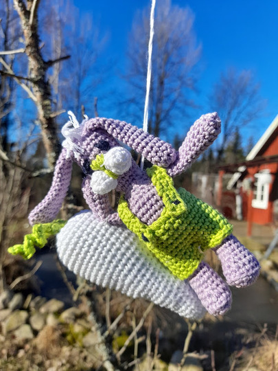 Ihr bekommt hier eine Häkelanleitung für ein Hasen Mobile.