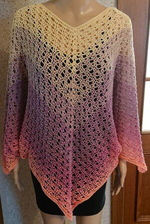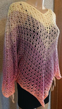 Die Tunika Xara ist ein hübsches Teil mit fledermausartigen Ärmeln und wird in einem Stück gehäkelt.