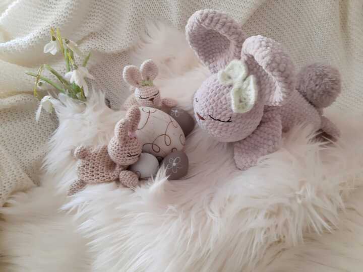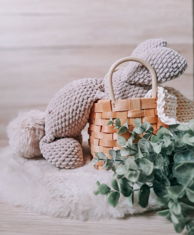 Verwendest du eine andere Chenille-Wolle, z.B. Himalaya, so wird dein Häschen deutlich größer.