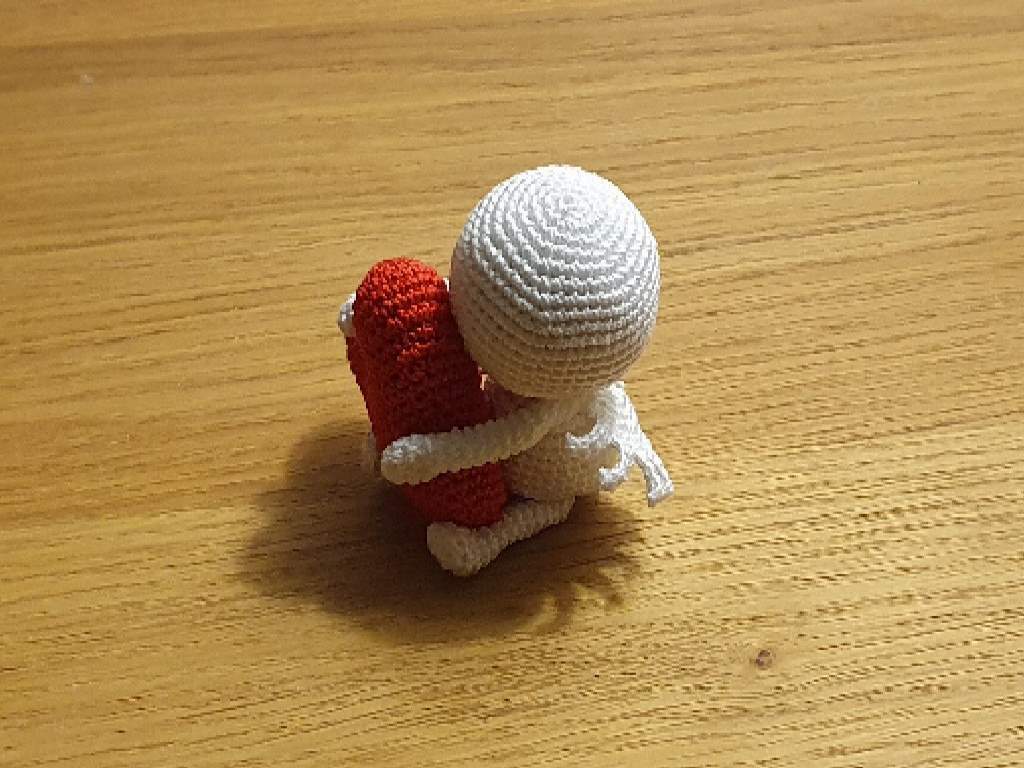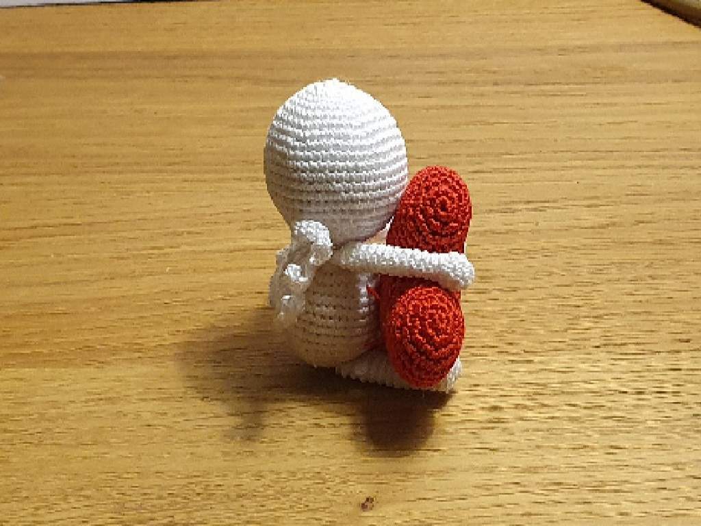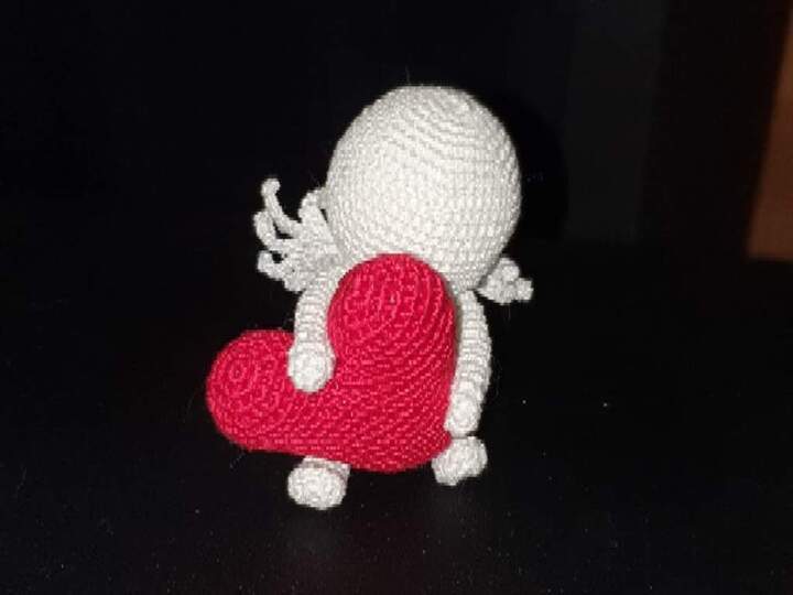 Wenn der Herzengel mit Baumwolle und Nadel 2,5 gehäkelt wird, werden ca. 40 g in weiß und ca. 15 g in rot benötigt.