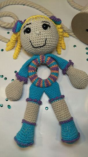 Wen man die Hände drückt quitscht sie da Quicker eingehäkelt werden,