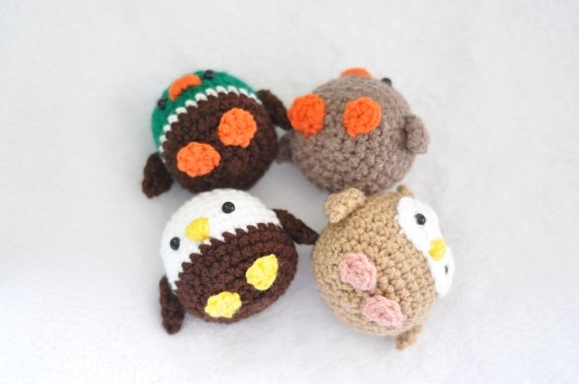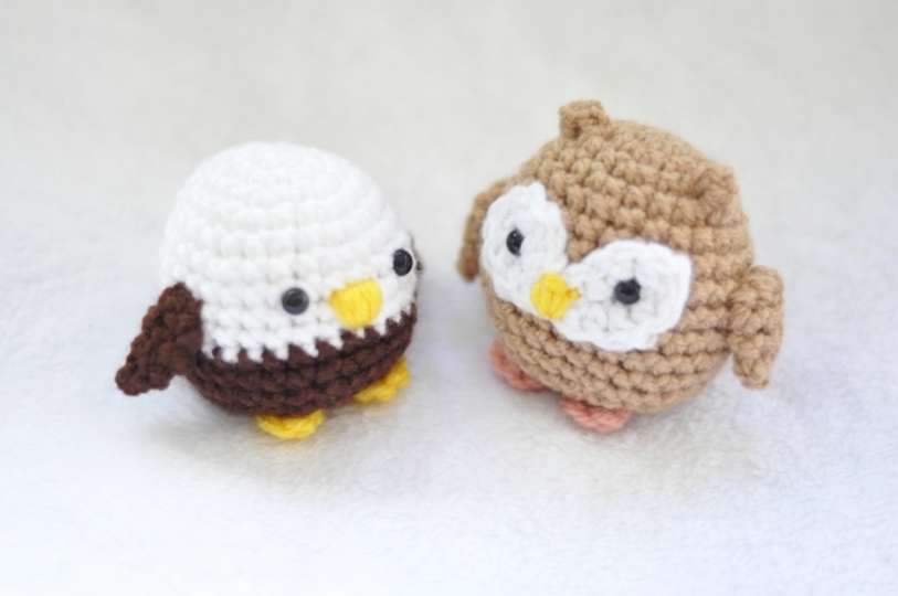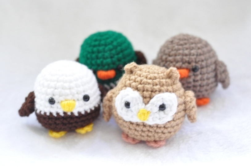 Die Vögel wurden mit einer Nadelstärke von 3,5 gehäkelt. Es werden Sicherheitsaugen (insgesamt 8 Stk.) und etwas Füllwatte benötigt.