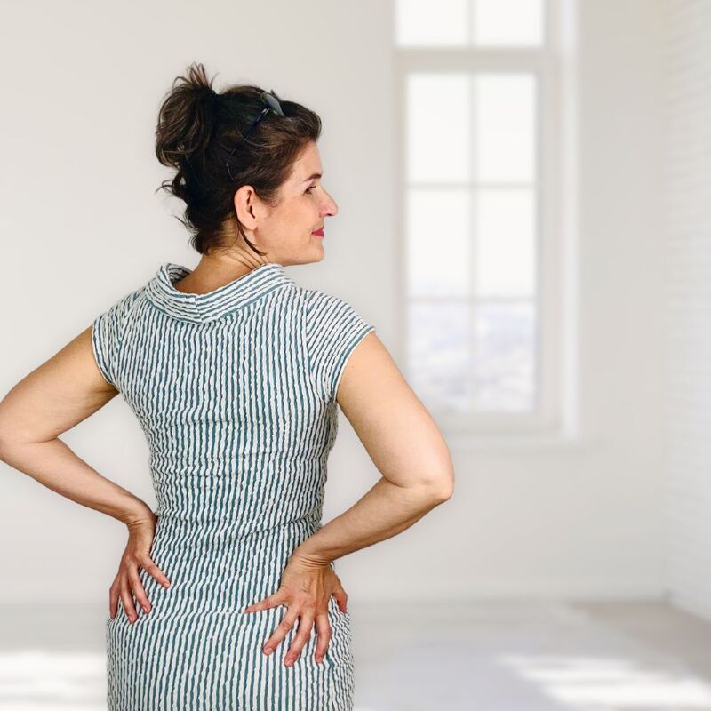 Das Schnittmuster Agda ist ein bodenlanges Jerseykleid mit dem Du garantiert viele Komplemente und Verehrer angeln wirst. Das Schnittmuster ist einfach gehalten und somit auch für Anfängerinnen geeignet. Der Hingucker bei diesem Schnitt ist der Kragen, der sich anmutig um den Hals schmiegt. Das Kleid wird in verschiedenen Längen angeboten und ist auch „shirt-tauglich“. Die schlichte Schnittführung lässt viel Spielraum für Stickereien und Applikationen – ebenfalls eignen sich Panelstoffe zur Verarbeitung.