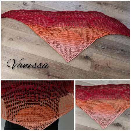 • Das Tuch ist mit der vorgegebenen Wolle ca. 170x60 cm. Dies variiert natürlich je nach Wolle, Nadelstärke und ob du fest oder locker häkelst.