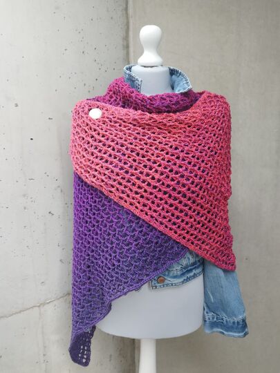 In der Anleitung sind 3 Versionen vorhanden: ein flaches symmetrisches Dreieckstuch, ein asymmetrisches Dreieckstuch und eine Stola (großer Schal). Alle 3 Versionen sind mit der entsprechenden Wolle immer der richtige Begleiter zu allen 4 Jahreszeiten. Das Muster ist ein absoluter Hingucker und durch seine fernsehtauglichkeit auch super schnell fertig. Diese Tücherdürfen in keinem Kleiderschrank fehlen.