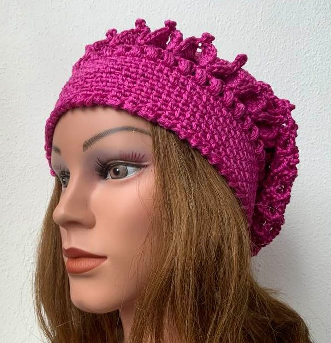 Diese SOMMER-BEANIE ist für jede Kopfgröße machbar ....diese hier hat 58 cm im Umfang..das Muster am Anfang ist nicht dehnbar...besonders wenn man eine feste Baumwolle benutzt..es gibt aber auch leicht dehnbare Baumwolle...