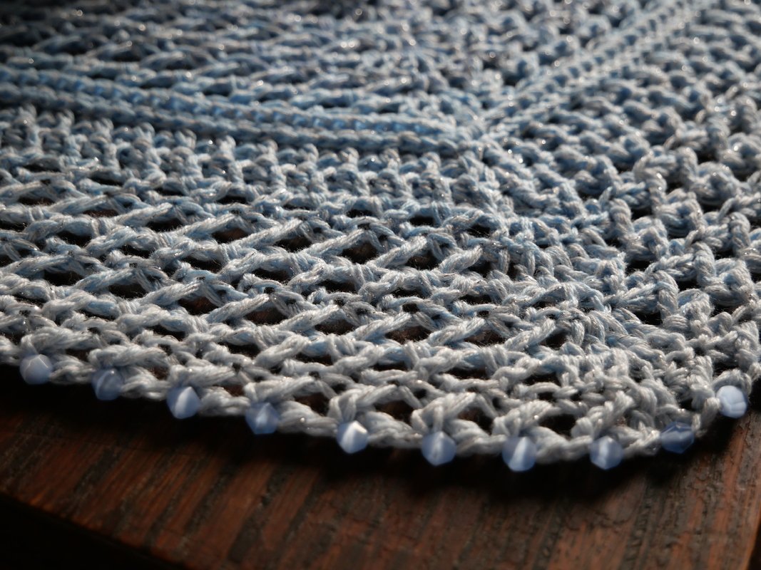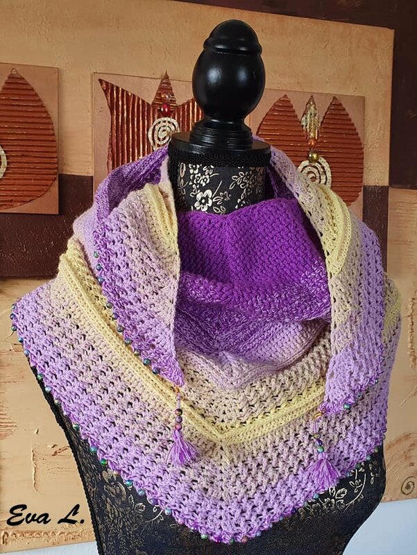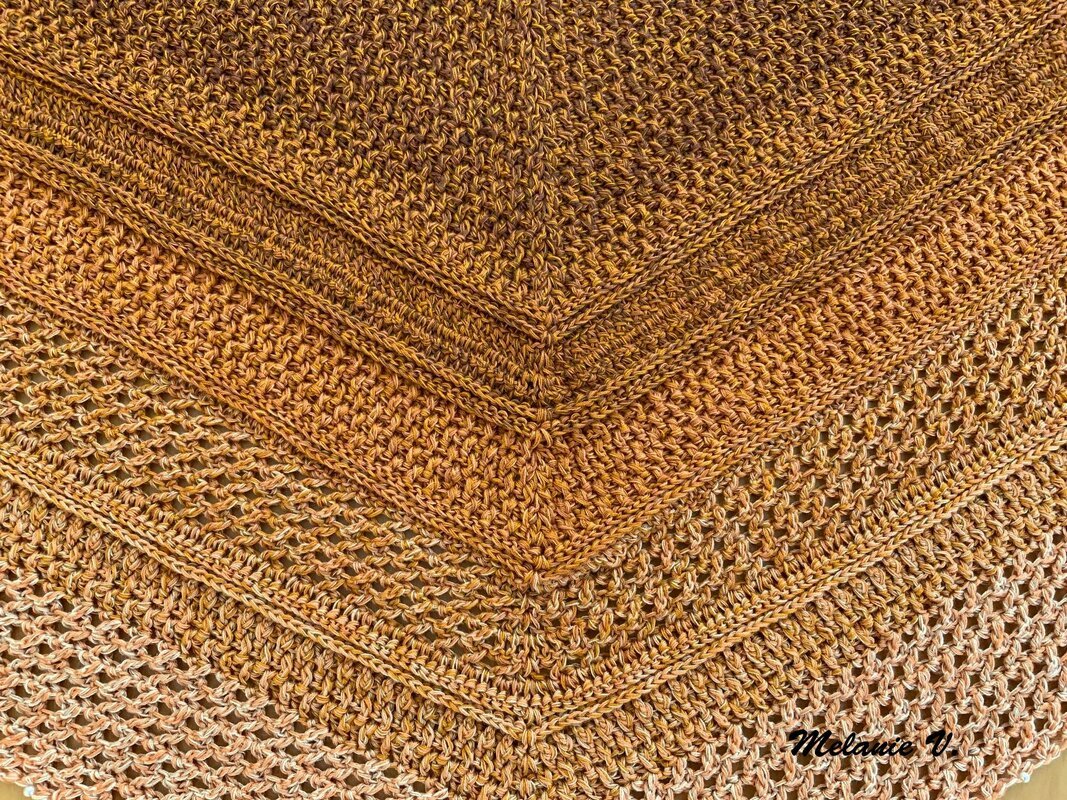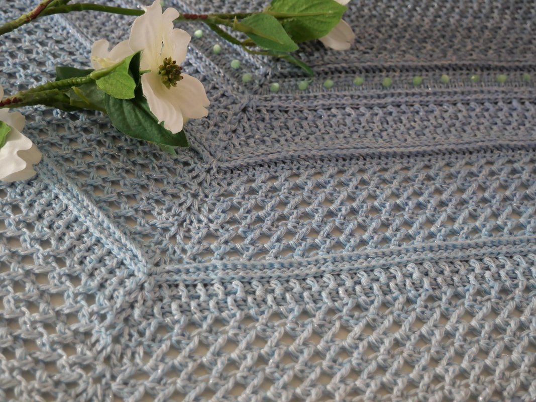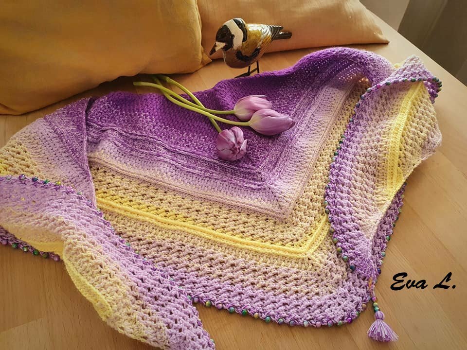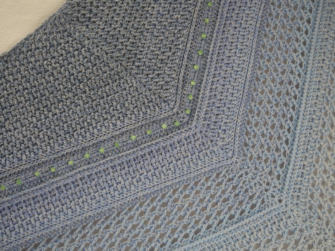 Mein Tuch "Catalina" ist bestens geeignet für die Übergangszeiten. Im Schulterbereich ist das Muster dichter, nach unten hin wird es luftiger. Die einzelnen Musterabschnitte lassen sich leicht verkleinern oder vergrößern, so dass das Tuch in seiner Größe variabel gestaltet werden kann.