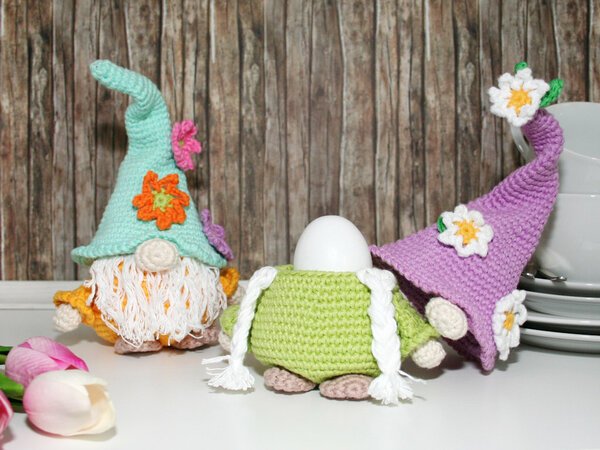 Wichtel nur im Winter oder zu Weihnachten? Natürlich nicht! Die Blumen-Wichtel lieben den Frühling und den Sommer. Als Deko bringen sie frische Farbe in dein Zuhause, als Eierwärmer sind sie dir auf dem Frühstückstisch zu Diensten.