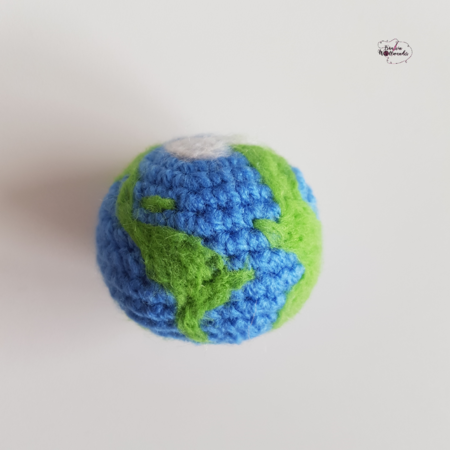 Ich habe mich noch nie so intensiv mit Planeten beschäftigt und auch der Schulanfänger hat sich sehr gefreut. Die Anleitung war sehr detailliert und die Auswahl der Farben, Größe und Specials auf den Planeten schön begründet. Besonders Spaß hat mir das Verfilzen der gehäkelten Bälle gemacht. Dabei habe ich auch die Verhältnisse und Anordnung der Kontinente auf unserer schönen Erde begriffen, die ich darüber hinaus noch mit den Vegetationszonen gestaltet habe.