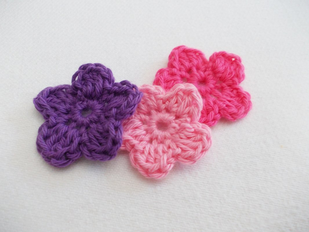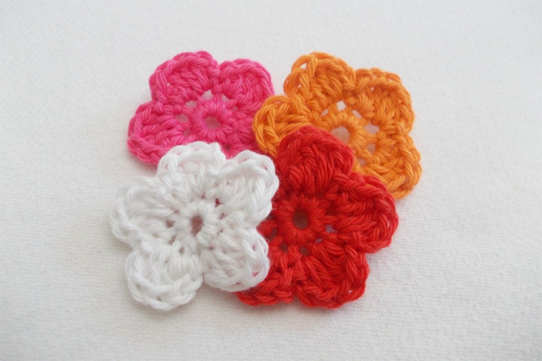 Süße kleine Streublumen, gehäkelt aus Baumwolle (Häkelnadel Nr. 2,5), Durchmesser 3 cm. Es gibt eine Datei mit allgemeinen Hinweisen für das Häkeln von Häkelblumen und die Anleitung für die kleinen Streublumien mit Bildern begleitet. Ihr könnt Euch jederzeit wegen Fragen an mich wenden.