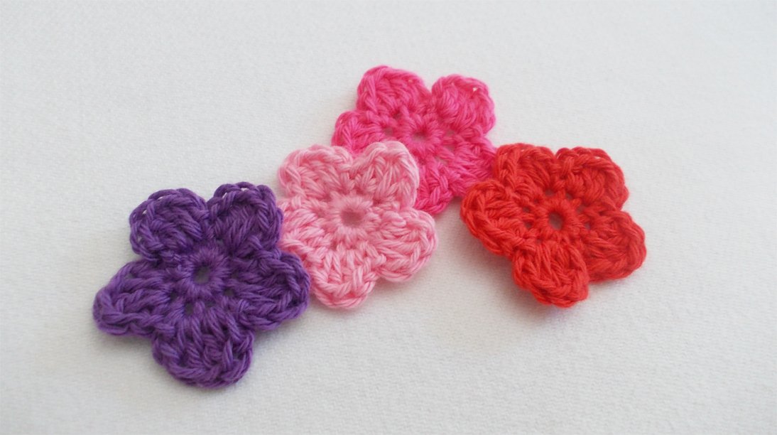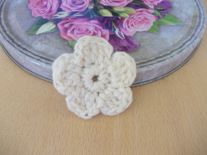 Diese kleinen Blümchen sind schnell gehäkelt und eine hübsche Dekoration. Nehmt Euch Woll-/Garnreste und legt einfach los. Bei Baumwolle ist es auch bei warmen Temperaturen schön, wenn die Häkelnadel fliegt!