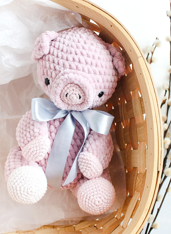 Wenn du die Plüschwolle von Himalaya Dolphin Baby benutzt, wird das Schweinchen ca. 20cm groß.