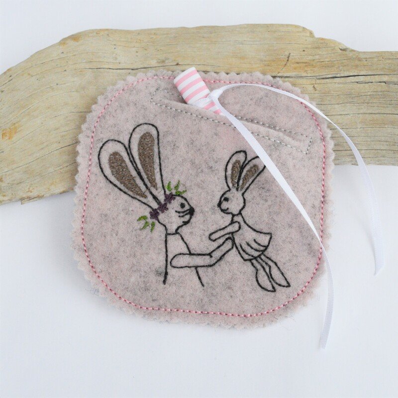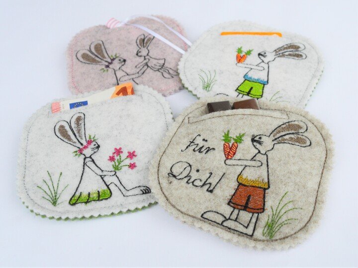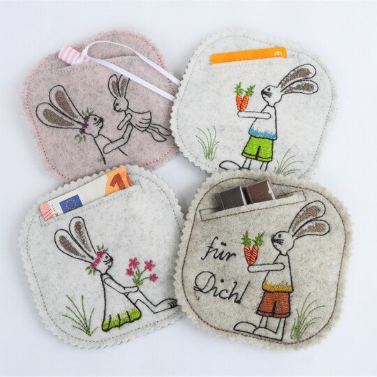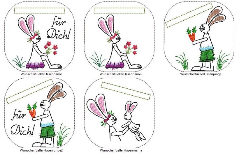 Hasenjunge und Hasendame sind jeweils einmal ohne Text und einmal mit dem Text "Für Dich!" enthalten.