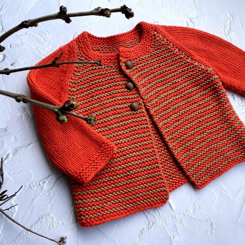 Diese Baumwolljacke wird ganz klassisch gestrickt. Jedes Teil wird einzeln gestrickt und später aneinander genäht.