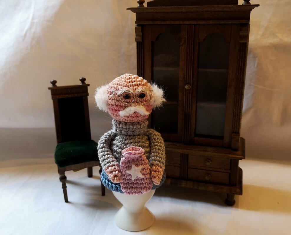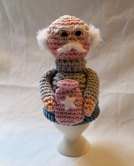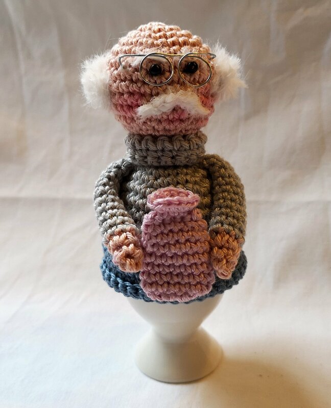 Mit dieser Häkelanleitung können Sie Opa Willi als Eierwärmer nacharbeiten. Ob Verschönerung des Frühstückstischs, kleines Versteck für eine Praline, Deko auf einem Pflanzengesteck, Geschenk für unsere Liebsten, Opa Willi ist immer bereit, seinen Besitzer mit Freude und Harmonie zu bezaubern. Ein ideales Präsent zum Vatertag, Geburtstag, Jubiläum, zur Geburt des Enkelkindes oder zu jedem anderen geeigneten Anlaß. Viel Spaß wünscht Petras Häkelvergnügen.