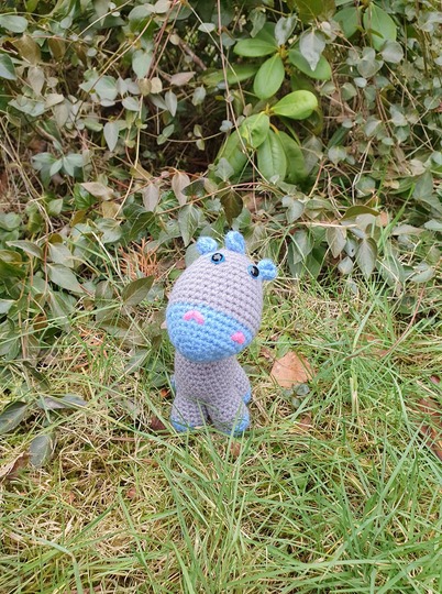 Größe (stehend) etwa 10 cm. Die tatsächliche Größe ist letztendlich abhängig von der Nadelstärke, der Festigkeit der einzelnen Maschen und das verwendete Garn.
