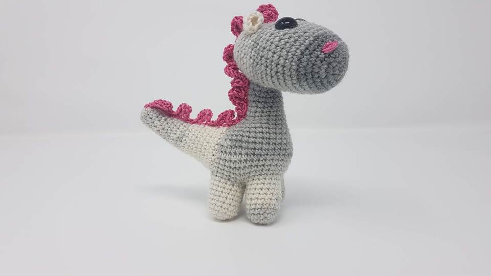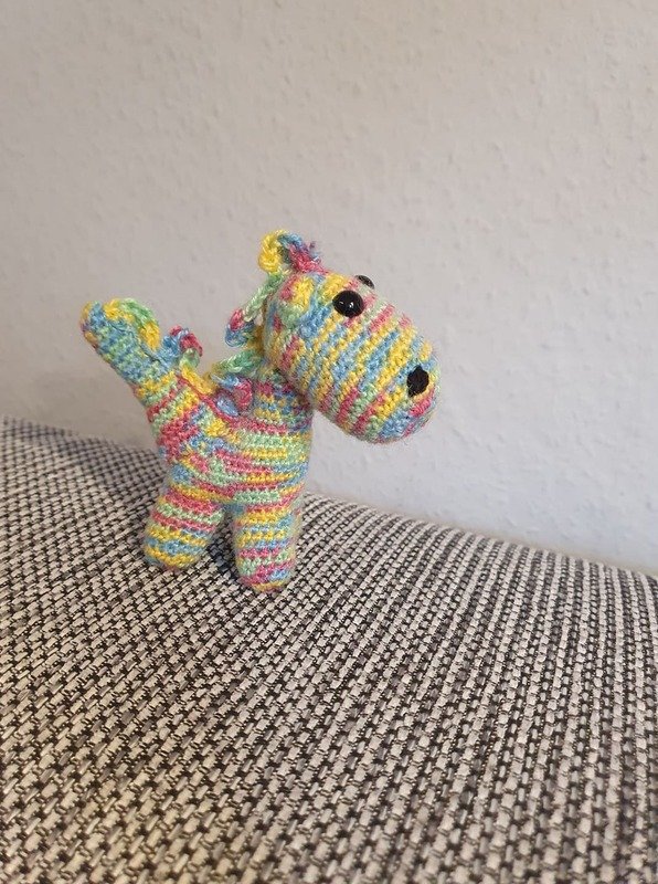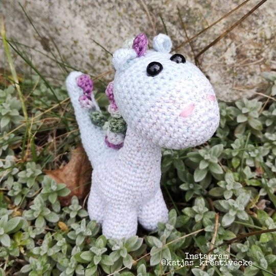Der Mini-Dino ist mit etwas Erfahrung super einfach zu häkeln - aber auch Häkelanfänger werden hier in kurzer Zeit ein tolles Ergebnis zaubern können. Wenn du nicht mit ihm schmusen möchtest, kannst du ihn auch super als Schlüsselanhänger verwenden.