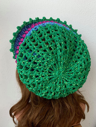 Du kannst alle langen Haar auch INNEN im Netzt tragen..das hat etwas von einem Burgfräulein...aber auch über die Haare getragen ist der Beanie Summergroove sehr schön.... das Muster sieht aus als hättest Du eine kleine, grüne Krone an...es gibt einen gute Kopfform!