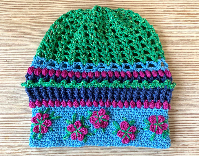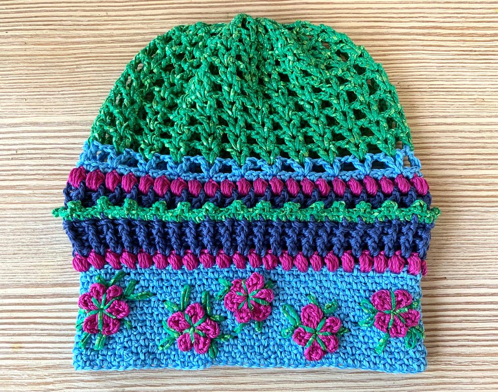 Der fertige Beanie Summergroove wiegt 150 Gramm - ist 29 cm lange- und passte für den Kopfumfang 56-58 cm