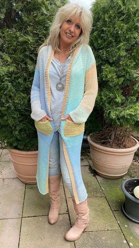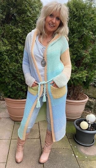 Die Länge ist individuell und kann auch als Cardigan gehäkelt werden.