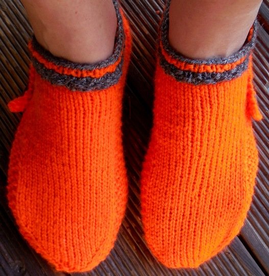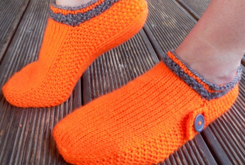 Diese Schuhe sind ideal für kühle Sommerabende und dabei relativ schnell und einfach nachzustricken. Das Stricken mit einem Nadelspiel ist aber Voraussetzung. Außerdem sollte man Maschen zu- und abnehmen können.