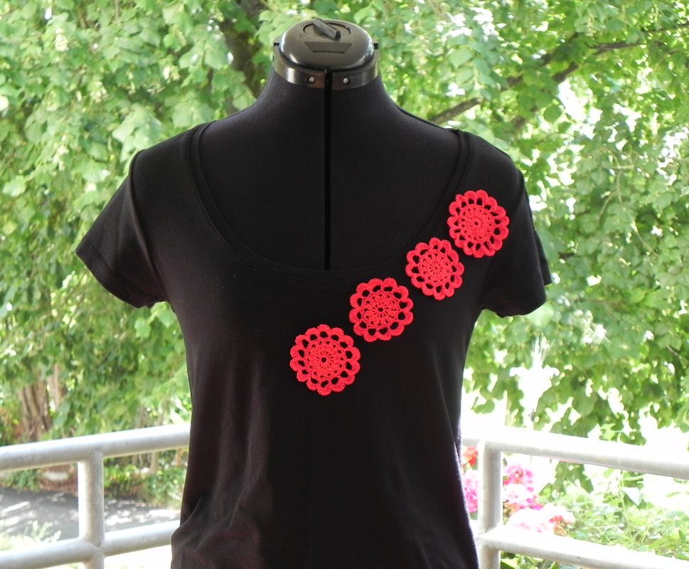 als Applikation, um einfache T-Shirts oder Kleider aufzupeppen, oder nicht mehr schöne Stellen bei Deinen Lieblingsstücken zu verstecken,