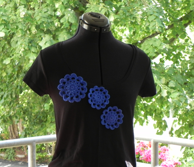 als Motiv für die Herstellung von größeren Stücken, z.B. für die wunderschöne Tunikas usw., dafür benötigst Du ganz viele Blümchen, die Du dann zusammennähst. Ich kann dazu, wenn Du möchtest, passende Tipps per Email schicken.