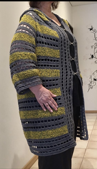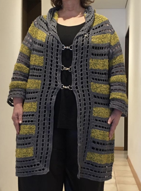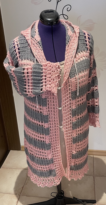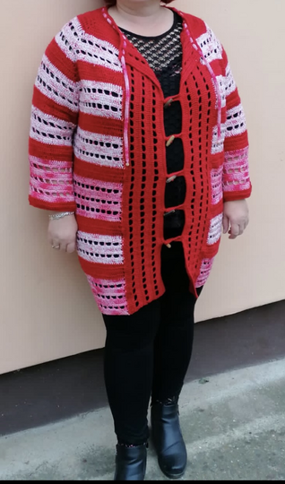 Ab Größe 36 kann dieses Jacke gehäklet werden. Die Jacke wird in RVO gehäklet, somit erweiterbar bis XXXl.