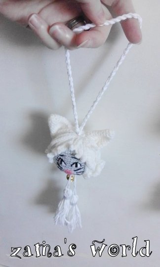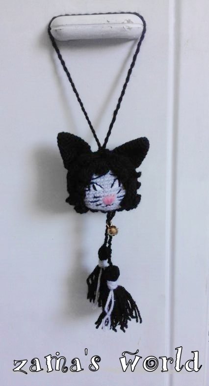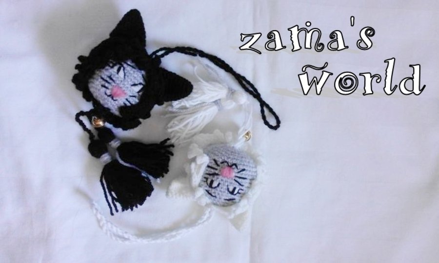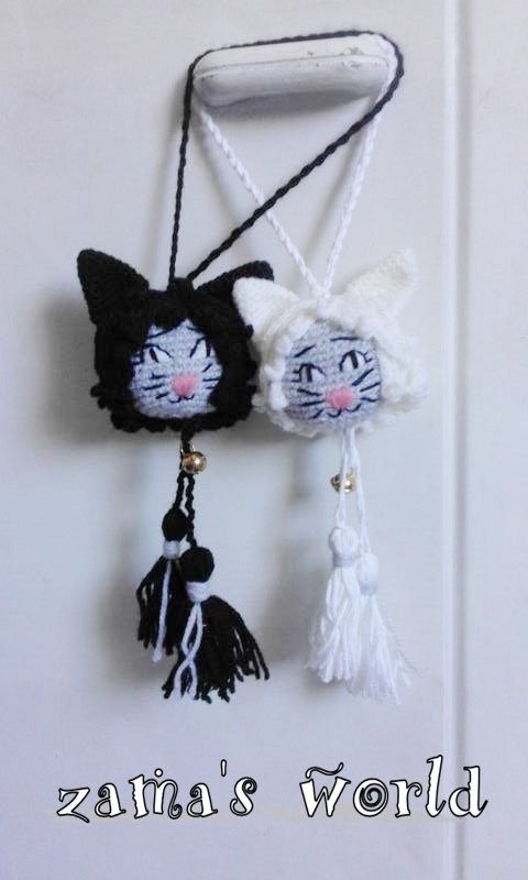 Meine Miezies haben einen Kopfumfang von circa 22 cm und messen ohne Aufhängung circa 20 cm in der Gesamtlänge. Ich habe sie mit einer Häkelnadel der Stärke 1,50 gefertigt.