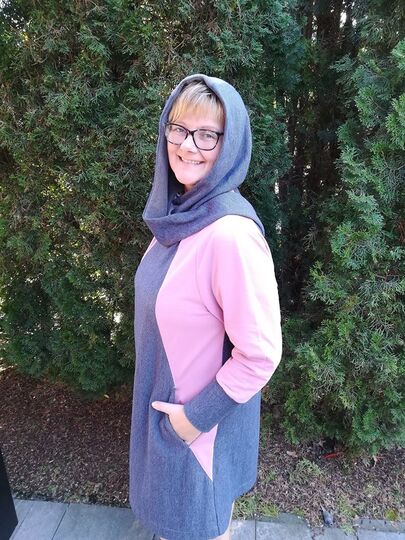 Genäht werden kann die Kapuze in äußerst verschiedenen Varianten, außen und innen die gleichen Schnittteile, die einfache und blitzschnelle Version oder außen die geteilten und innen die einfachen Schnittteile. Alles ist möglich und das ganze natürlich auch im Material Mix.