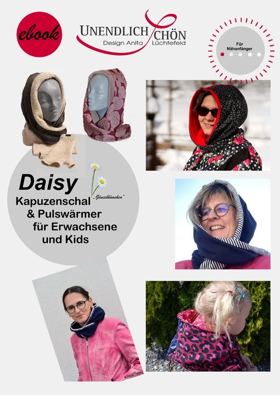 Der Kapuzenschal ist ein tolles Gimmick für jede Jahreszeit. Er kann für den Sommer als Deko, als Teil zur Jacke oder Pulli genäht werden. Ebenfalls ist er praktisch im Sommer auch als Schutz gegen Wind, z.B. an der See oder aus leicht wasserabweisenden Stoffen als Schutz vor leichtem Nieselregen. Im Winter eignet er sich praktisch für alle Jacken und Mäntel ohne Kapuze, quasi als die Allweather – Ergänzung schlechthin, ob in richtig dick und flauschig-kuschelig oder in einer eher leichten Variante.