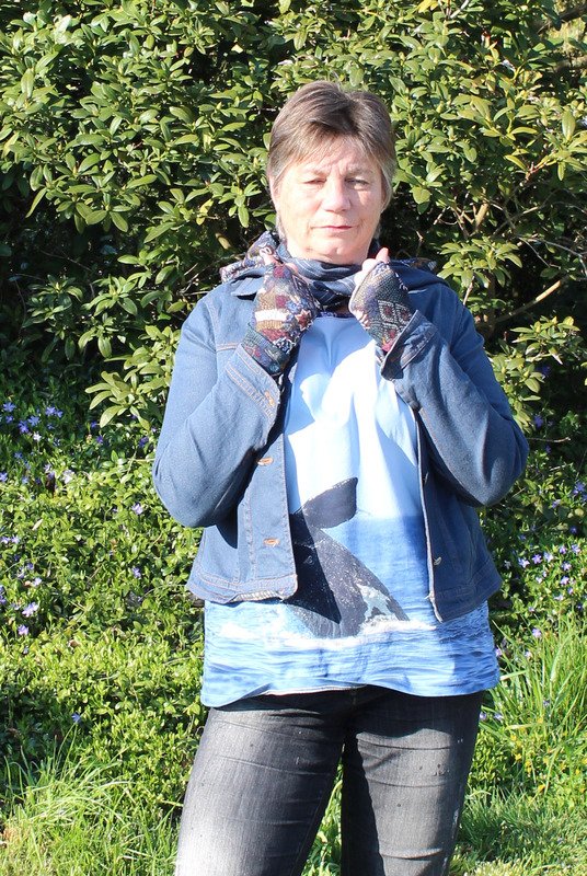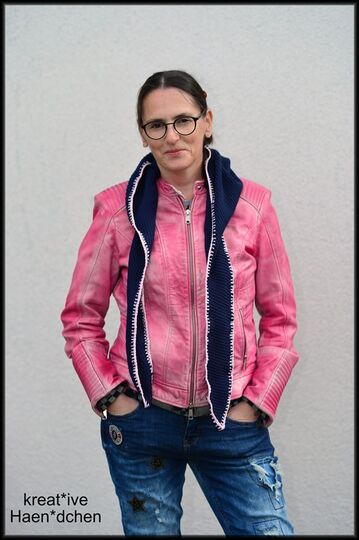 Dazu können aus dem passenden Innen oder Außenstoff oder aus Stoffresten schicke Pulswärmer mit Daumen genäht werden. Einfach genäht mit Rollsaum oder mit dehnbaren Einfassband, ebenfalls ein tolles Gimmick zur Kombi, was mit wenig Einsatz und Aufwand erfahrungsgemäß eine Menge Aufmerksamkeit erzeugt.