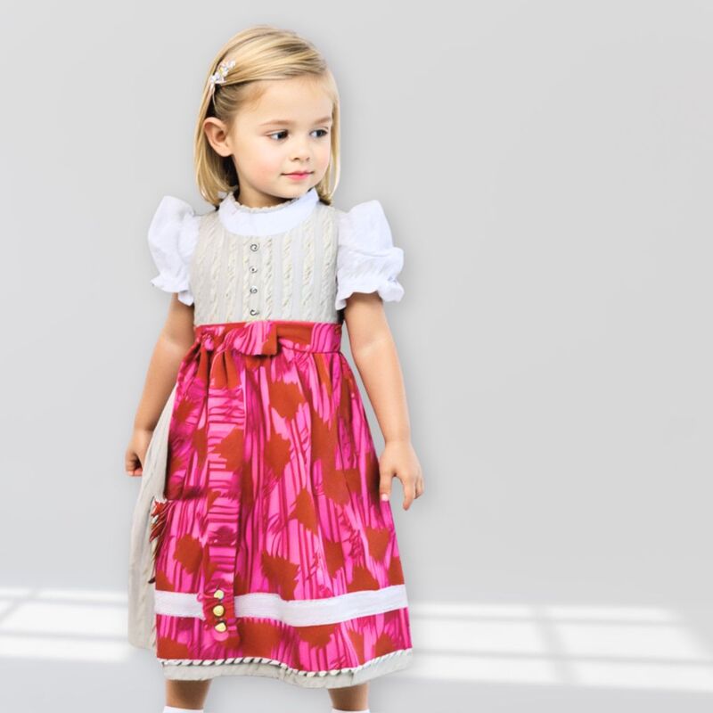 Dieses Kinderdirndl hat Träger und kann auch gut als Trachtenrock ohne Schürze genäht werden.