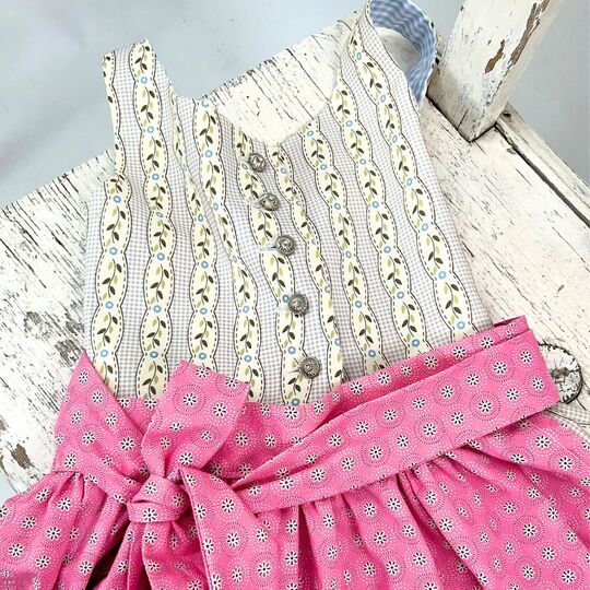 Mit dem Schnittmuster Sissi nähst Du Dir ein bezauberndes Kinderdirndl mit Schürze. Der Schnitt ist einfach zu nähen und auch für Nähanfängerinnen geeignet. Lediglich die Knopfleiste erfordert etwas Geduld/Übung. Eine eine bebilderte Nähanleitung ist begefügt. Das Dirndl kannst Du aus Stoffresten nähen und nach Lust und Laune mit Bändern und Borten verzieren, z.B. klassisch mit „Froschgoscherln“.