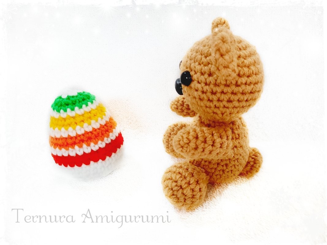 Dieser Bär und sein Ei sind perfekt, um unser Zuhause zu Ostern zu schmücken! Es sieht in allen Einstellungen gut aus und ist sehr schnell zu erledigen. Sie können es in verschiedenen Farben machen, um einen Korb zu dekorieren! Die endgültigen Abmessungen betragen ca. 12 cm. Die Größe kann je nach Größe der Nadel und des Fadens variieren.